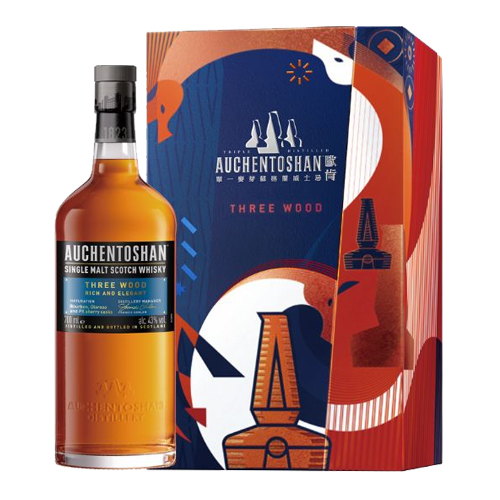 同時獲得 ISC 烈酒競賽與 SFWSC 兩大比賽金獎殊榮的歐肯三桶單一麥芽蘇格蘭威士忌,2023 年更榮獲英國 IWSC國際葡萄酒暨烈酒競賽金獎肯定。3 次蒸餾的純淬酒液,萃取出濃郁的金銅色澤,先後經過波本桶、Oloroso 雪莉桶以及 Pedro Ximénez 雪莉桶陳年,帶來層次豐富又醇厚的太妃糖與雪莉酒香甜及葡萄乾等豐富的水果氣味、濃濃的奶油果糖香、烘烤榛果散發出柔順細緻又華麗豐富的獨特口感。