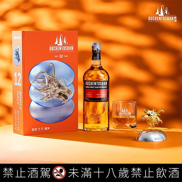 歐肯(Auchentoshan)威士忌再度攜手獲得國際紅點大獎及入選 2023 AGI 國際平面設計聯盟成員的葉忠宜設計師,以「好運龍總來」的理念,推出四款:12 年、14 年、18 年、三桶「歐肯招財龍威士忌禮盒」,為 2024 年獻上最有氣勢的新春禮盒!