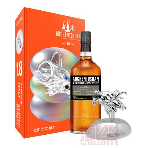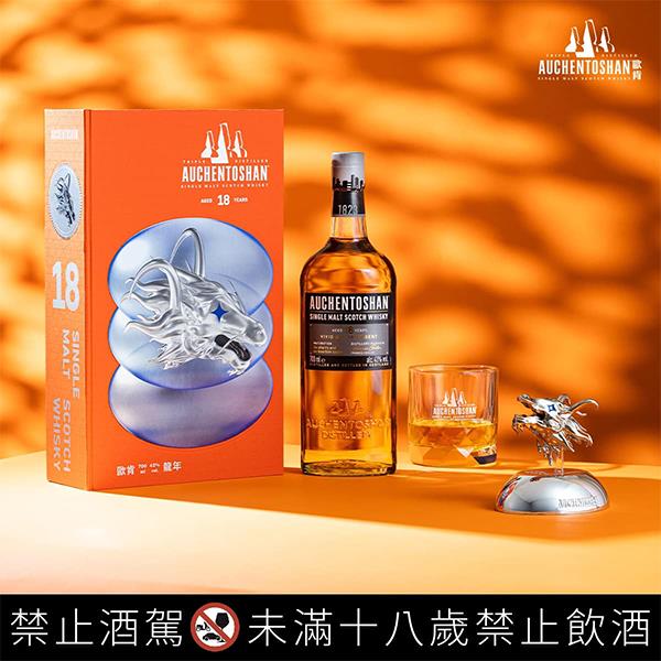 擁有金黃色澤的歐肯(Auchentoshan)18年單一麥芽蘇格蘭威士忌,以3次蒸餾的純淬酒液,於美國波本橡木桶及西班牙雪莉桶中歷經18年以上的熟成,擁有極特殊的新鮮草葉清香風味,入口後醇美香甜的焦糖輔著烘烤杏仁的香味,悠長的回甘高山茶餘韻,口感帶有蜂蜜香甜與木質清香,散發18年熟成獨有的柔和細緻口感。在 2021 年獲得 ISC 烈酒競賽銀獎與 SFWSC 金獎。
